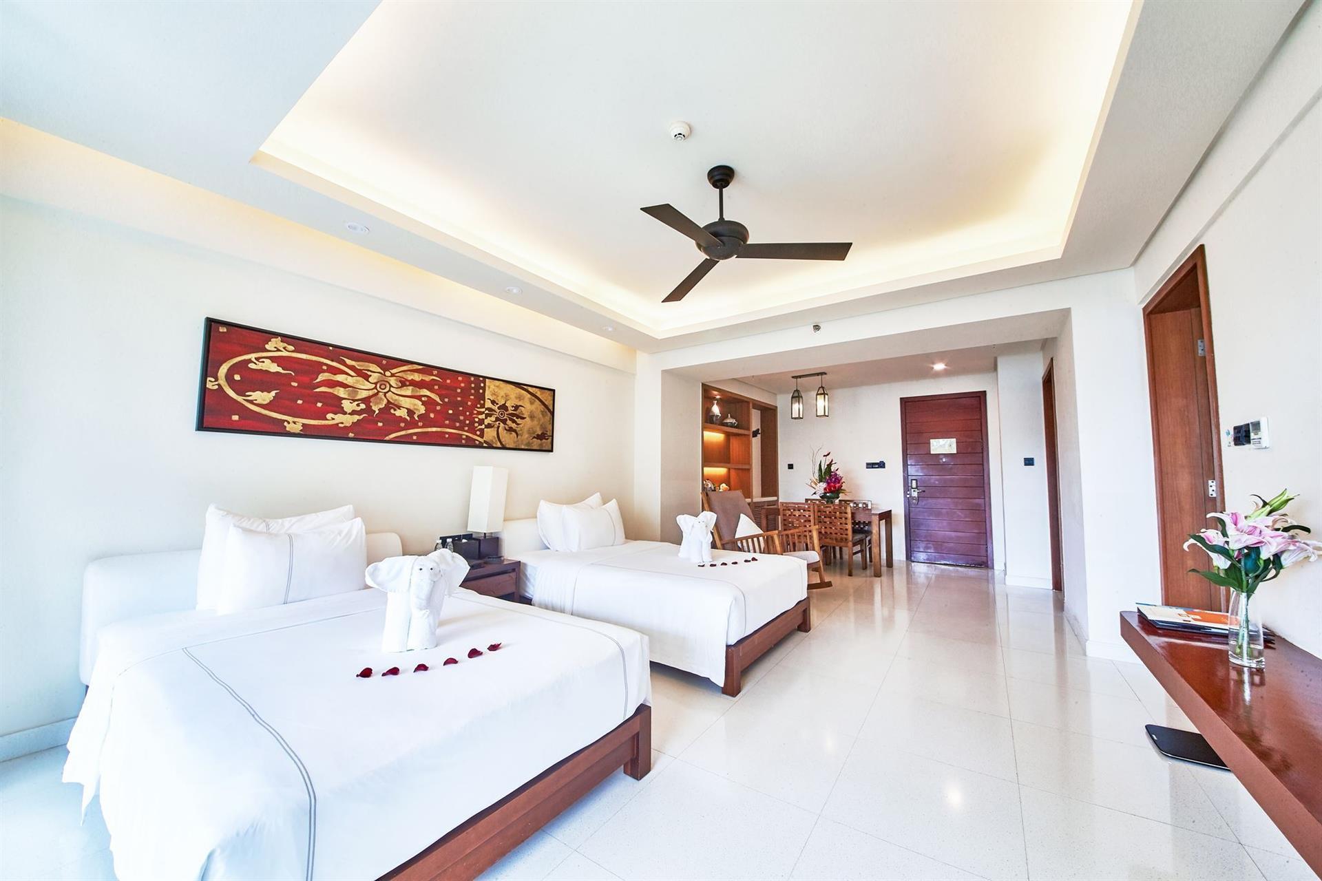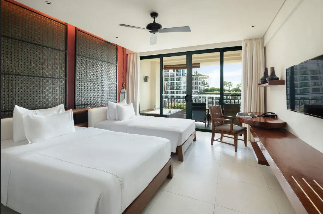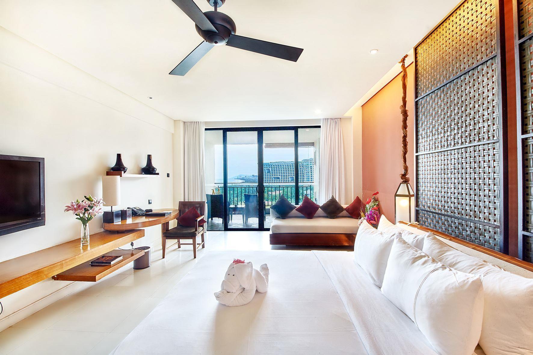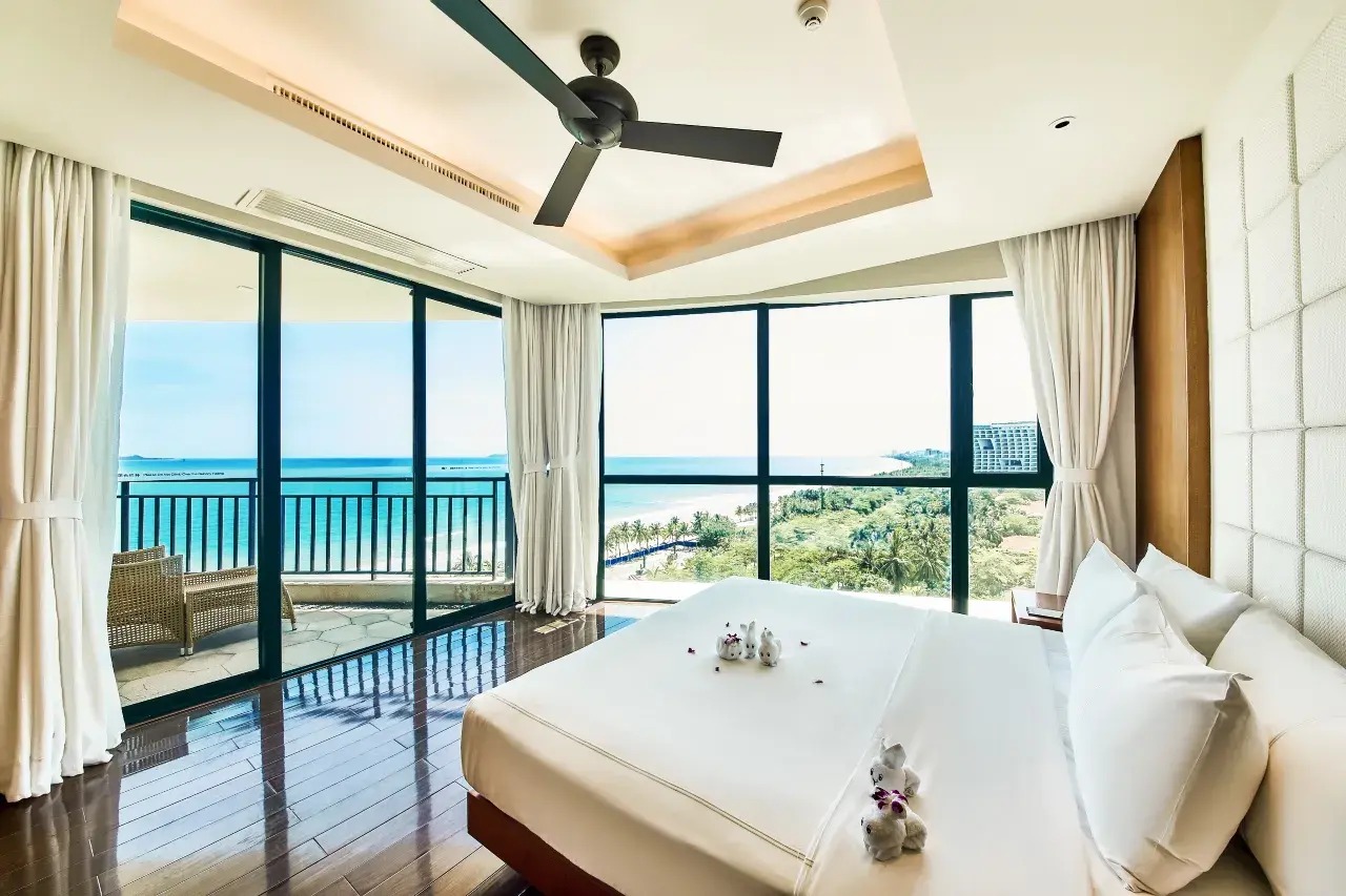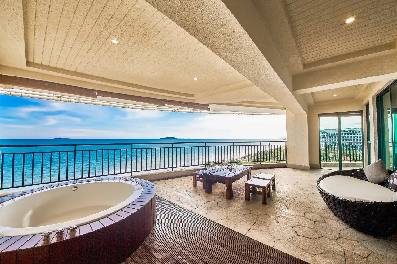 Хороший отель,ездили с ребенком!В отеле питались только завтраками (голодными точно не останетесь) есть как китайская так и европейская кухня!обед и ужин шведский стол в отеле по 30уе,рядом ресторанчики где можно на 10-15уе покушать на человека!Частый вопрос про блох в песке,за все время укусила один раз только жену!На фото шезлонги на пляже,но у нас они отсутствовали(Бассейн очень хороший и много развлечений и анимации для детей!В отеле семей из снг может 5-6 было только,одни китайцы-смотрят на вас как на 8чудо света,потому что европейский людей многие в живую не видели)))Обмен валют ближайший в городе, до города мин.10-15 езды и цена около 6-10уе.Очень зелено и не напряжно тут было,а в дадунхае это городской отдых с пляжем,очень много там людей русских и ресторанов наших)ездили переодически в тц,рестораны и тд. Банковские карты почти негде не проходят,иногда в отеле и тц, качайте alipay привязывайте карту и не будет проблем!!! Днем на пляже максимум было у нас человек 20(китайцы не загорают) китайцы не умеют плавать поэтому все время они в бассейне!Вечером как садится солнце выходят все из отелей и идут ловить маленьких крабов, и вот тут на береговой линии тьма народа негде пройти!По экскурсиям,мы ездили и советуем обязательно на ялонг Бэй Парк и Хайнань исланд,статуя в наншае!!))экскурсии можете ехать сами на такси,обойдутся в два раза дешевле!такси от борта по счетчику цена от 0,4 до 0,6 уе за км!с такси проблем не было нигде даже в горахубирали в номере каждый день, но полы мыли не часто!В отель ночью не заселяют,прилетели в 5 утра нам сказали в 9 сможем только заеселить,поэтому оплачивали дополнительно одни сутки 80уе обошлись,там с ними нельзя договорится((Вода была очень теплая и даже не охлаждала,когда чуть упала температура было отличноПо не сезон и дожди, могу сказать так-вы ждете там дождя чтобы охладиться) Дождь идет максимум часа 2, по 3-4 суток вообще не было, за 12 дней раза 3-4 только шел не более 2 часов!Очень большая влажность,на солнце в дали от моря с вас просто льется пот)всем все понравилось и даже детям,не забудьте купить у гида симку с интернетом за 100юаней на 50гигов!Кушали в ресторанах где питаются сами китайцы поэтому не траванулись