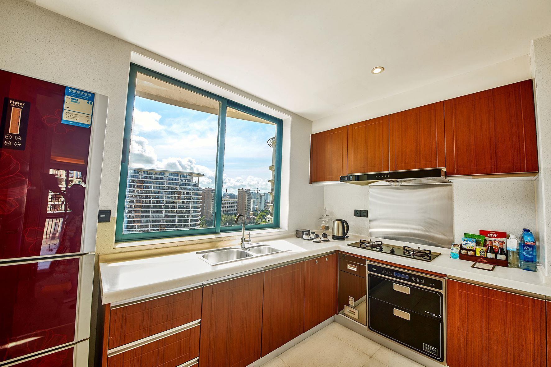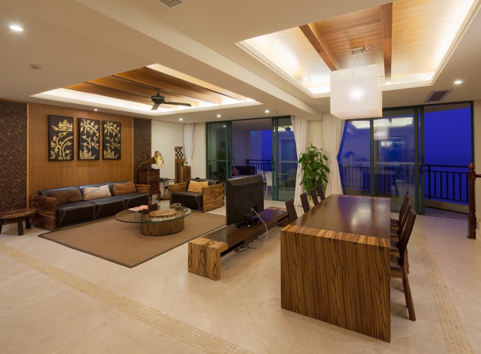 Первое, что бросилось в глаза — это неподдельная услужливость и быстрота исполнения любых запросов персоналом. Номер большой, уютный. В номере масса полезных вещей от расчесок до резиновых тапочек для бассейна. Персонал откликается на просьбу, если понимает ее. Мне долго искали тапочки 45 размера, а сыну — детский халат, в итоге — все принесли. Никак не могли понять, что нам нужно третье полотенце и чашка, помогло обращение на ресепшене, не успели подняться в номер — все уже было на месте. Из минусов — скудная специфическая еда, даже в так называемом европейском ресторане, хотя завсегдатаи этого побережья сказали, что в других отелях на побережье и такого нет, а уж тем более — все включено. Мясо если есть, то оно, как правило, полусырое, а то и с кровью. Из привычной еды есть картошка, но редко. Есть лапша, но странная на вкус, поэтому чаще всего едим рис. Зато для любителей китайской еды достаточно морепродуктов и соусов. Что порадовало, так это десерты, фрукты и обалденное пиво. Минусы в номере — мест для размещения одежды — практически нет. Шкаф для вещей — маленький и узкий, тумбочек для белья нет в принципе. Зато есть плита, чайник, вытяжка, кухонные шкафы, в которые мы и разложили одежду из чемоданов. Отель явно рассчитан на отдыхающих без вещей. Горничные явно не умеют читать на своем языке, т.к. вместо коробок с бритвами захламили ванную комнату такими же с виду коробками, но с расческами. Несмотря на систему "Все включено" приходится ходить в браслете и еще показывать карточку, а при заказе в барах, даже мороженого, долго ждать счета с цифрами 0,00, чтобы расписаться в нем. Охранник, помогающий пересечь дорогу от отеля на пляж, о котором много писалось в предыдущих отзывах, в принципе, бесполезен, так как сам боится машин, а водители его просто игнорируют. Научившись лавировать на пешеходных переходах Пекина, мы спокойно освоили и этот маршрут. Хотя поначалу было не по себе. За 3 безоблачных дня жена и сын успели обгореть, несмотря на использование крема с фактором 50 (ничто не помогает) — с 12 до 16 лучше на улице не появляться, о чем всех и предупреждаем. В наше пребывание объявили на побережье штормовое предупреждение, персонал без суеты, по военному слаженно, закрыл все уличные светильники целлофаном, навесил огромные двери, уложил горизонтально кадки с пальмами, щели проложил мешками с песком, все быстро и четко . В каждый номер пришла горничная и занесла с балкона мебель в номер. Ждем, что будет дальше, по непроверенным данным, нам обещали то ли тайфун, то ли цунами.