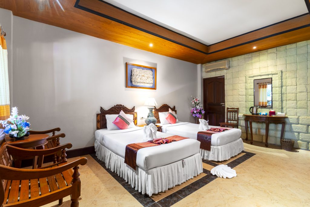 Расположен на курорте Клонг Прао на первой линии. Состоит из нескольких маленьких корпусов в тайском стиле, территория- тропический сад. Перед выходом на пляж бассейн и выдача полотенец. Рядом пляжный ресторан, где подают завтрак. Пляж отличный, заход плавный, песок как мука. Шезлонги только полусидячие. Рядом с отелем магазины, кафе, лавки с фруктами, соками, лапшой, массажные салоны и т.д. До Уайт Санд Бич 5 минут на тук-туке (50 батт с человека). До парома 10-15 минут. Все достопримечательности в пределах доступности. Отличное место для релаксного отдыха.