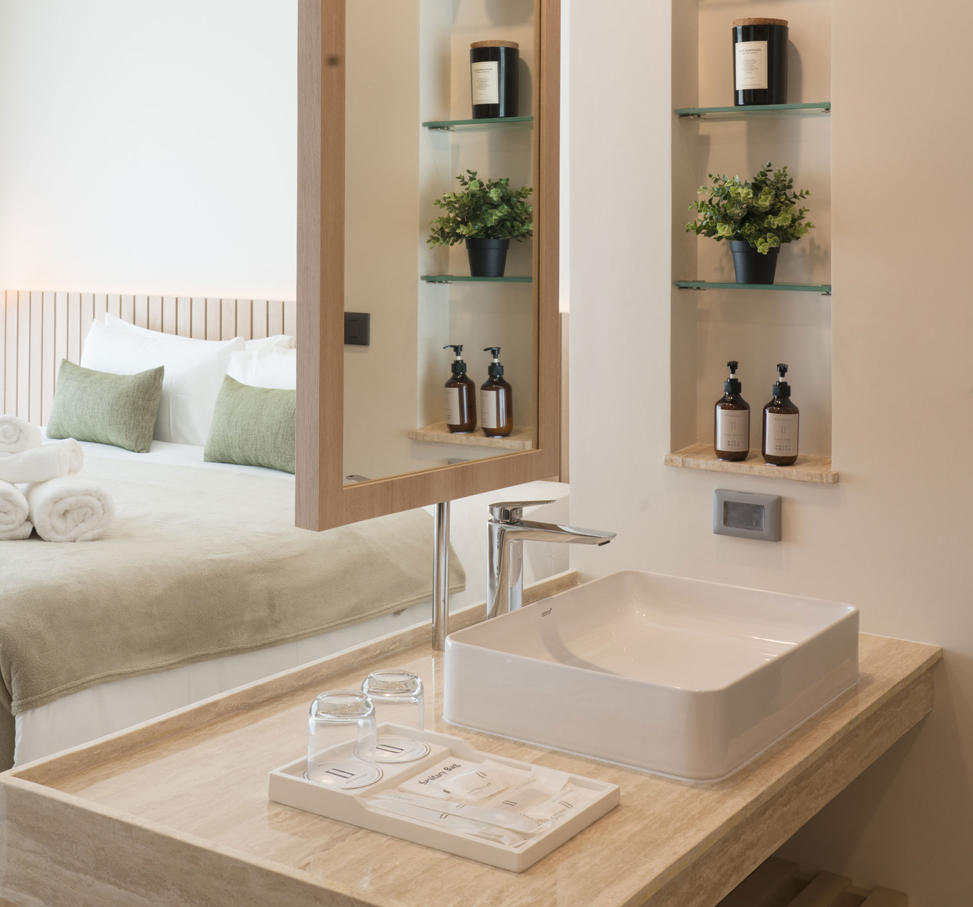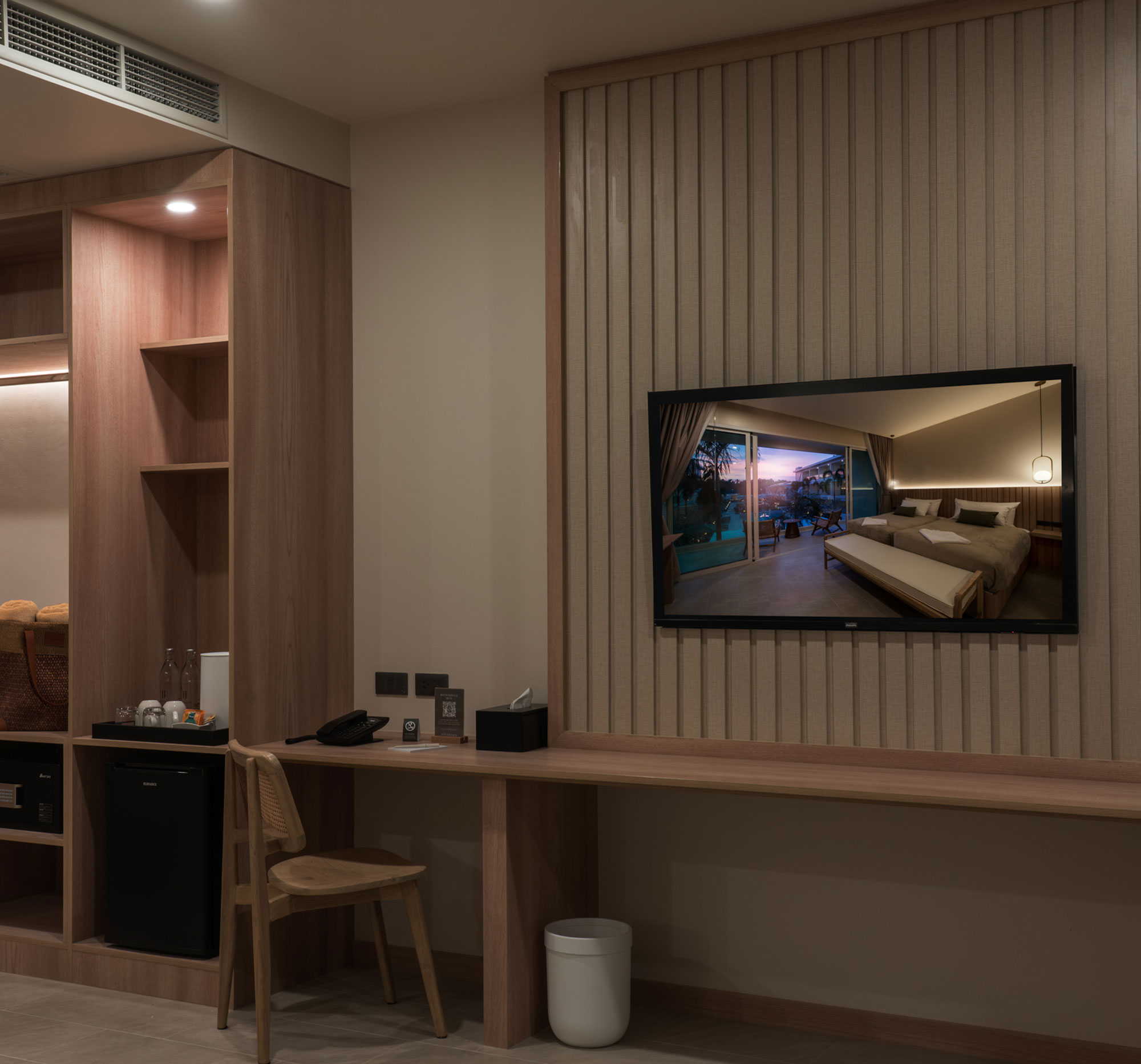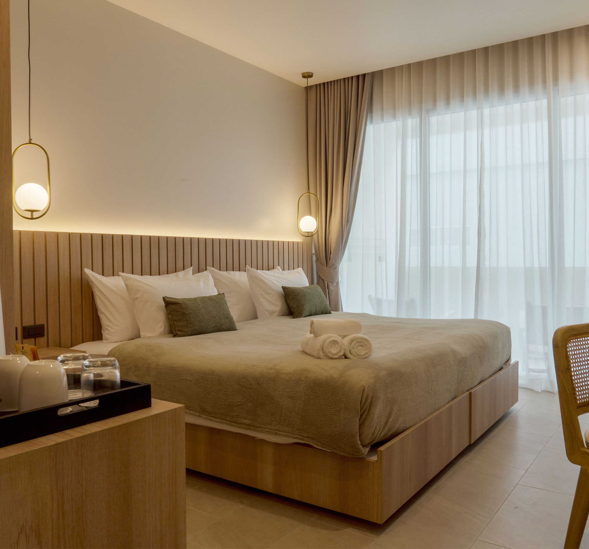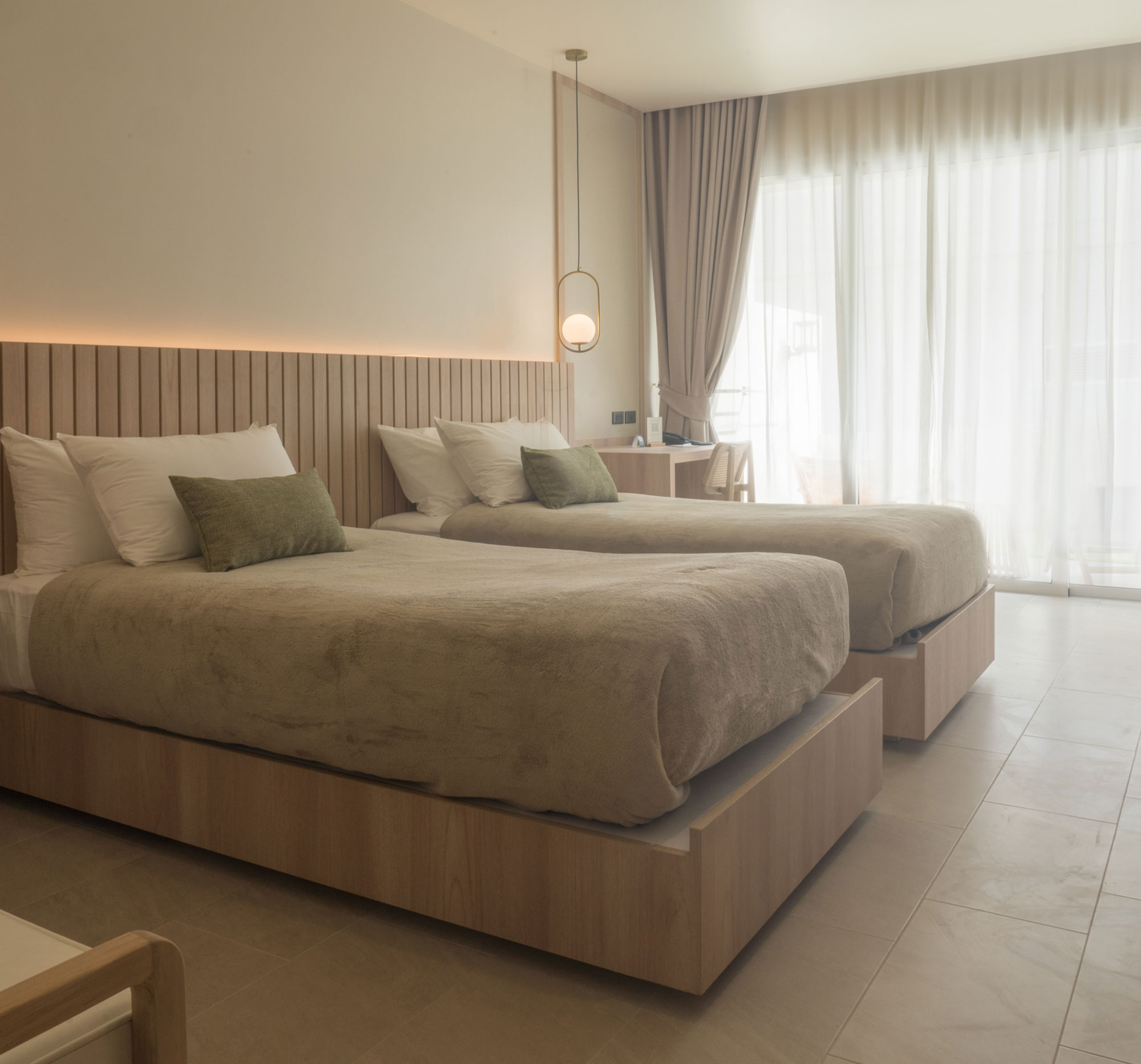 Улучшенный номер с панорамными окнами, балконом и собственной ванной комнатой с душем, феном и туалетно-косметическими средствами. Для размещения гостей служат две односпальные кровати или одна двуспальная. В числе прочих удобств Интернет, кондиционер, сейф, телефон, телевизор, халаты, тапочки и набор для приготовления чая и кофе.
